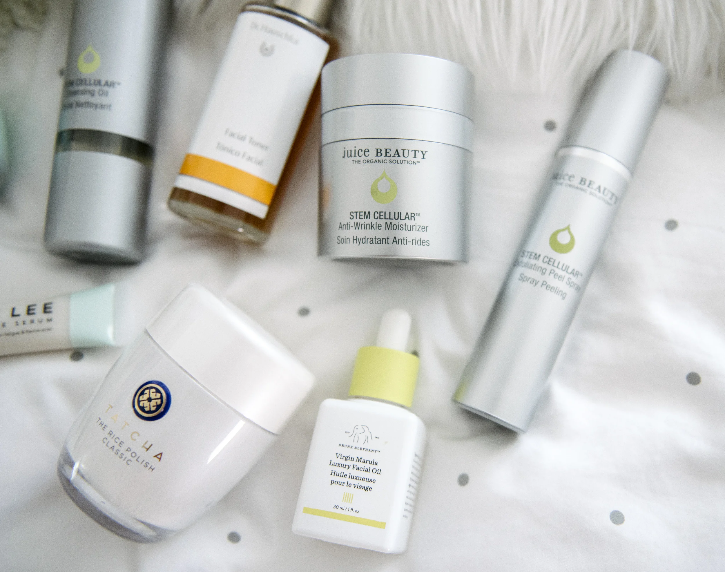 Exfoliators: I follow my face wash with Tatcha’s The Rice Polish Classic foaming enzyme powder. It’s such a gentle exfoliator that you can really use it every day if you’d like. I tend to exfoliate every other day but it just depends on your skin and preference. I also use Juice Beauty’s STEM CELLULAR Exfoliating Peel Spray on my neck and chest. I recently realized that I had been neglecting this area and unfortunately sun damage over the years has finally starting to catch up with me. Dark spots and wrinkles are becoming a bit more noticeable. I love this spray because it’s so easy to use on your neck and décolleté where a regular exfoliator might be too harsh for that kind of delicate skin. You just spray it on and allow it to absorb a few seconds. You can use your hands or a washcloth to exfoliate in a circular motion and then rinse (I use a wet washcloth to rinse it off and it’s super simple). I will say that it has a bit of a strong smell to it. When I was feeling nauseous I had to pass on this product but now that I’m feeling better I have actually started to enjoy the scent. Just fair warning for those of you with sensitive noses during pregnancy!